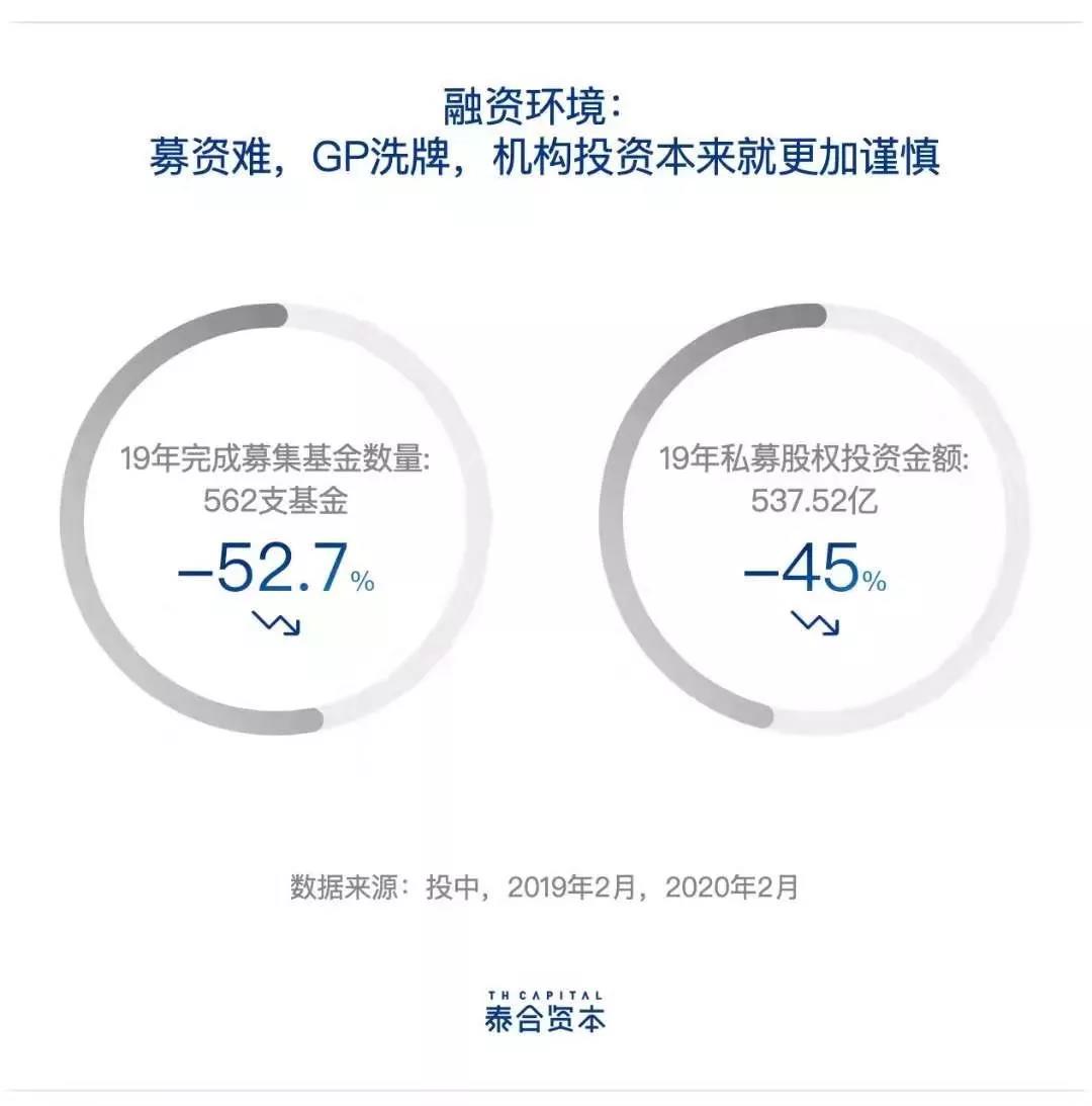 回到微观角度,我们排除疫情的影响,先看融资的环境究竟是怎么样的。我们看到,2019年因为募资难、GP的洗牌,导致投资机构已经变得更加谨慎,对于标的的选择也越来越挑剔。