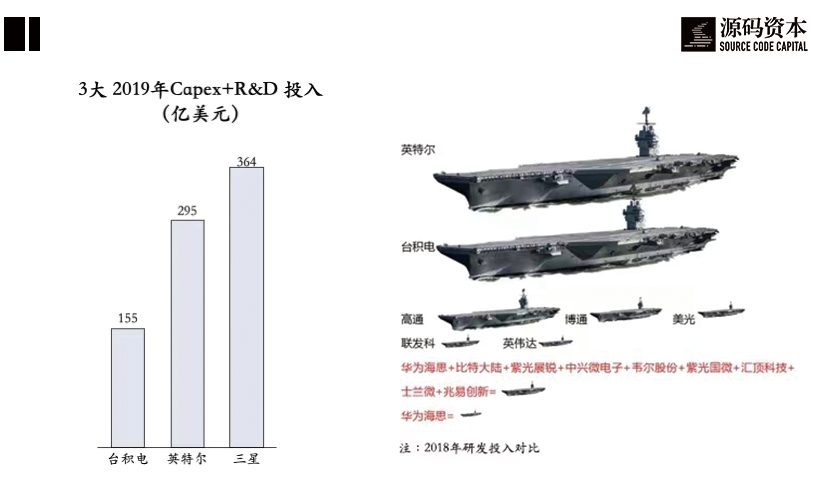 头部晶圆厂的资本与研发投入,远大于纯设计类公司(Fabless模式):
