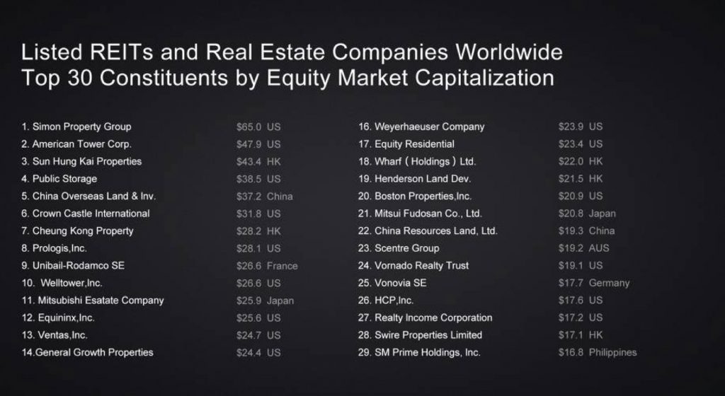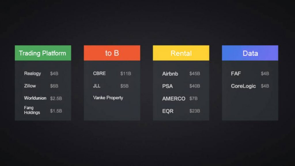 In China, the industry is closely linked with the development of REITs (real estate investment trusts). If we follow the development of REITs, then data concentration will be a big influencer for our growth. The largest real estate businesses in the U.S. today are in the picture, but they are not the largest developers. All of them are large REITs. A typical one would have a size of about USD $50 trillion in the U.S. Cheung Kong Property ranks 7th and still is not the largest real estate investment trust. I think rental is a major trend. By comparison, real estate investment trusts are ahead. The largest REITs are residential REITs, and commercial is the second largest. There are also good big data companies online in the U.S. They are all for commercial real estate, their monetization all come from financial institutions, that is our goal for the future.