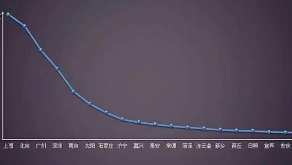 所以“农村包围城市”这个策略的名字是后来因为竞争形势,大家对美团的误解。那么,为什么美团开九十几个城市,而不是150或者25个?这是一个非常关键的策略选择。美团当时花了很长时间讨论这件事情,把这个想象成一个坐标,一个横轴一个纵轴,横轴是一个城市打一个点,纵轴是这个城市的体量。把体量最大的城市排在前面,体量最小的城市排在后面,画出一张图大概是下面这样一张图。